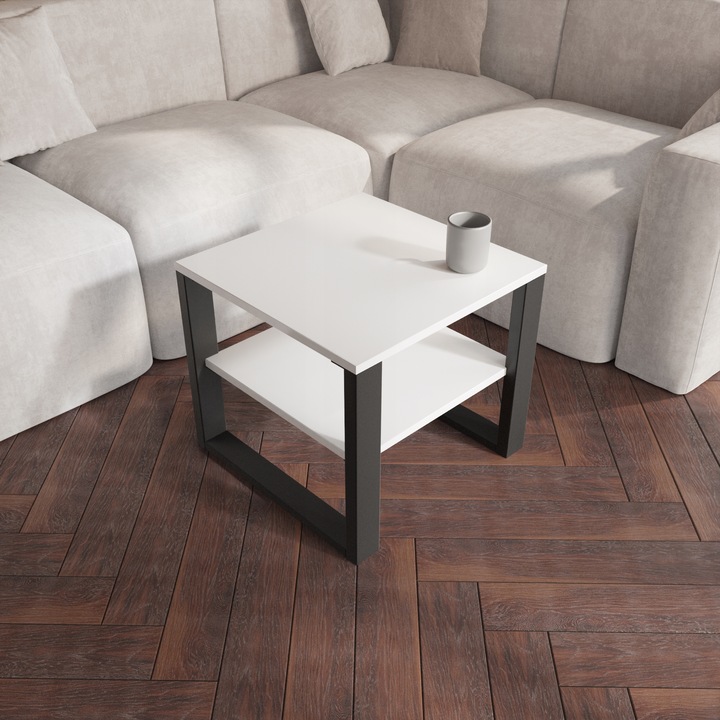 Dzięki podwójnemu blatowi, nasz stolik kawowy oferuje doskonałe rozwiązanie do przechowywania napojów, przekąsek czy książek. Możesz swobodnie aranżować przestrzeń według własnych potrzeb, co czyni ten mebel niezwykle praktycznym. Wymiary 50×50 cm sprawiają, że stolik jest kompaktowy, a jednocześnie wystarczająco przestronny, by pomieścić wszystko, co potrzebujesz.