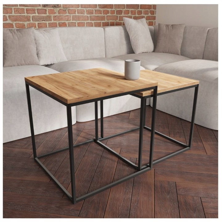 - Wymiary: 50×50 cm (większy stolik), mniejszy dopasowany do większego